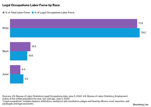 The legal labor force is still dominated by white workers, with deficits of black representation in legal occupations, according to Bloomberg Law’s analysis of employment data released June 5 by the U.S. Bureau of Labor Statistics.