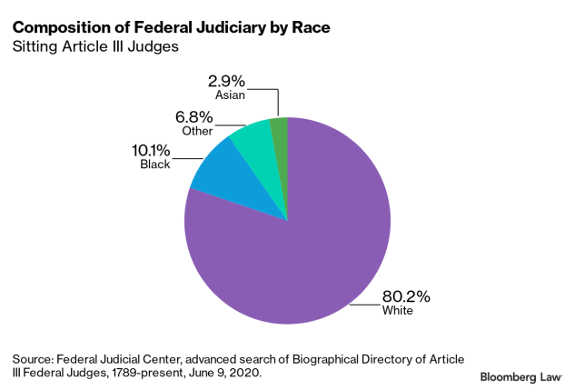 As of June 9, there were 140 sitting judges of African-American or mixed African-American race on Article III courts, out of 1,387 active judges, according to data from the Federal Judicial Center.